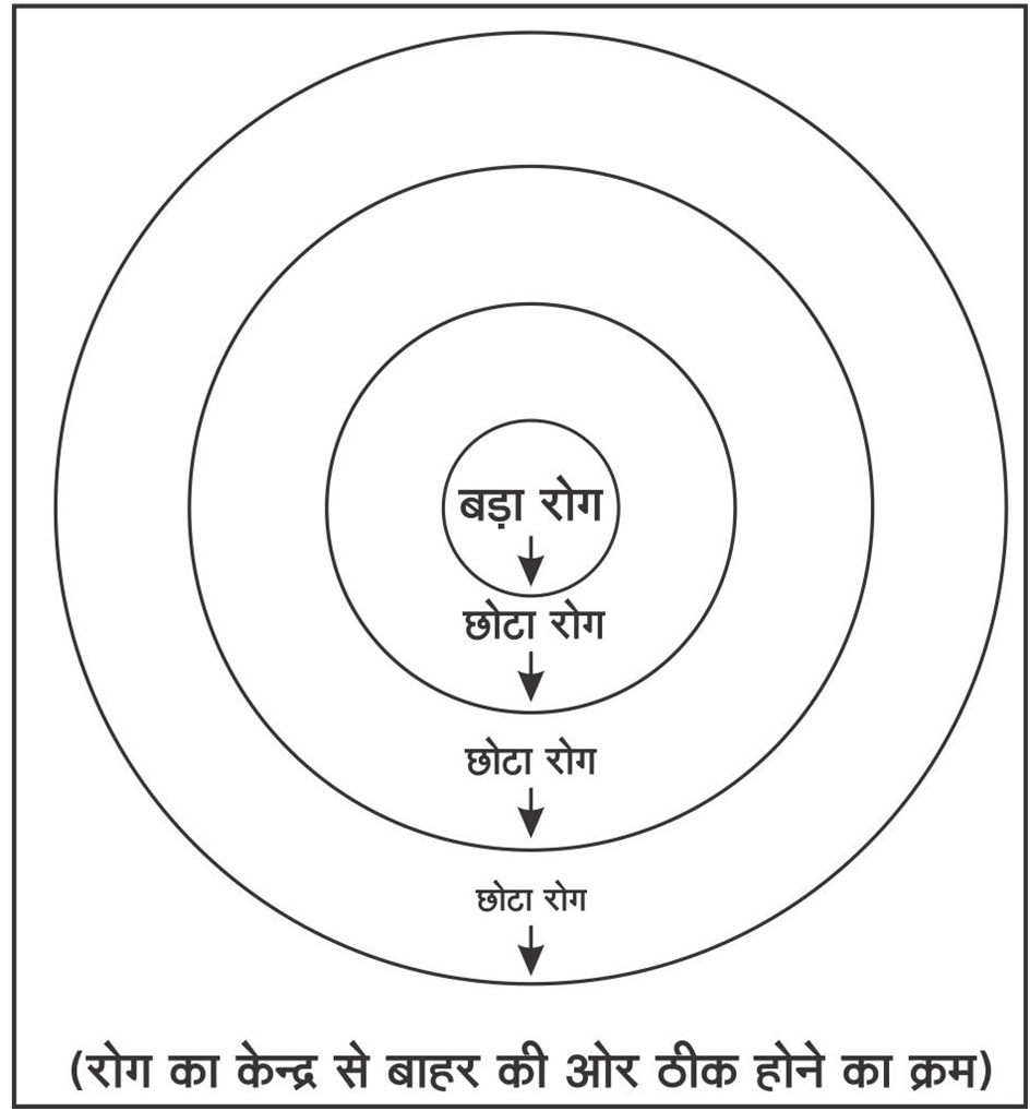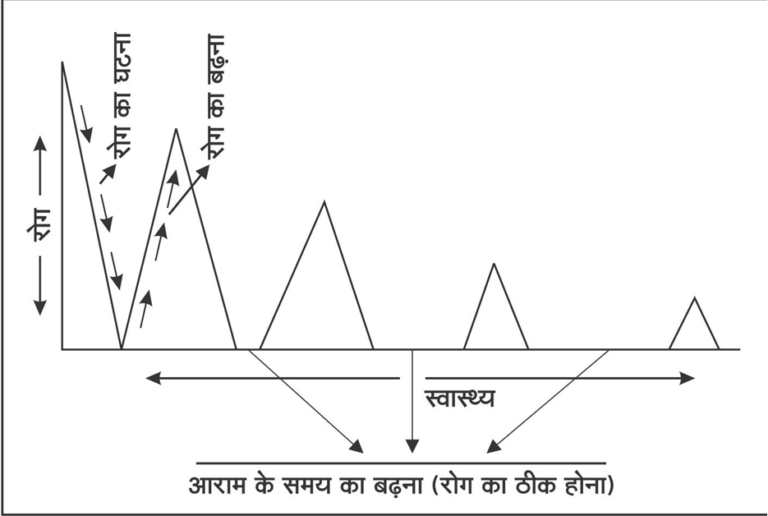 According to Homeopathy the Cure (permanent remove disease) process is as follow like below graph (in general way for understanding to all people):-