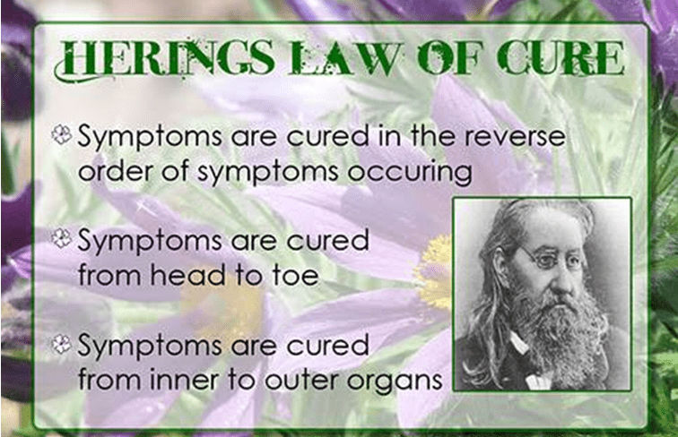 According to Homeopathy the CURE process has been must follow the rules of Dr. Constantine Herring as below:-